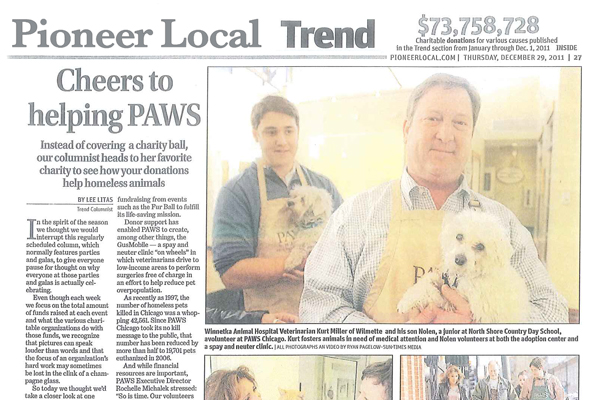 Cheers to helping PAWS - Pioneer Press - December 29, 2011