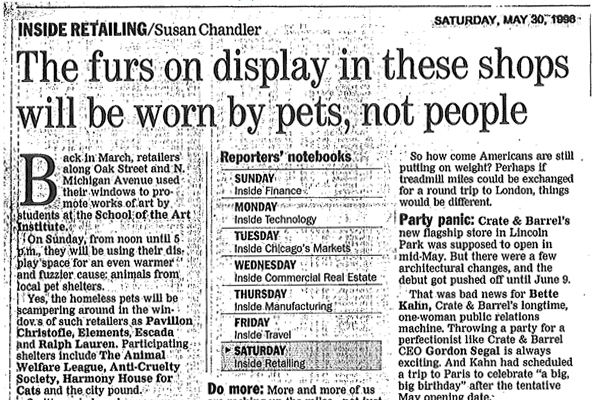 Furs on display in these shops will be worn by pets, not people - Chicago Tribune May 30, 1998