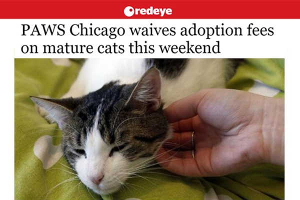 Read more about our efforts to find homes for adult cats two years and older: http://www.redeyechicago.com/artsculture/redeye-paws-cats-free-good-home-20160414-story.html