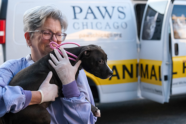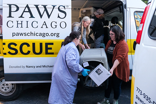 PAWS Chicago rescue vans returned from the hurricane-ravaged Florida Gulf Coast Tuesday evening with 53 dogs and cats from shelters directly impacted by Hurricane Ian. These homeless animals had already been in the shelters before the storm hit, making much-needed space for the influx of animals displaced by the hurricane. PAWS partnered with Humane Society Naples, which operated as the nerve center for animals from several area shelters, including the Gulf Coast Humane Society in Fort Myers, which had to shut down due to loss of power, water, and staff.