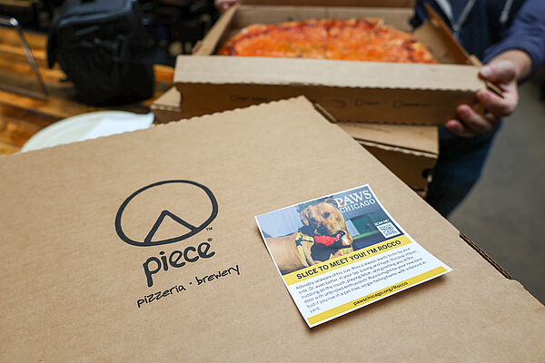 Our Slice to Meet You campaign is making headlines! PAWS Chicago has partnered with Piece Pizzeria on a new effort to find homes for dogs who have been at the shelter the longest. The campaign features flyers of adoptable dogs on pizza boxes delivered to thousands of homes across Chicagoland with a photo and QR code that links to their bio on the PAWS website.