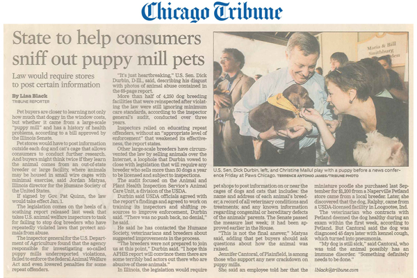 State to help consumers sniff our puppy mill pets - Chicago Tribune - May 31, 2010