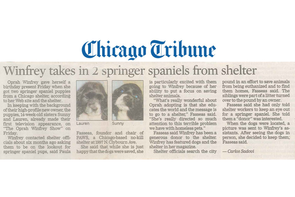 Winfrey takes in 2 springer spaniels from shelter - Chicago Tribune - February 1, 2010