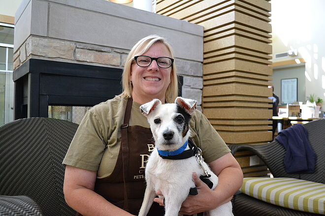 My main role is Dog Town level 3 volunteer, a.k.a. "Dog Wrangler" at the Adoption Center.
