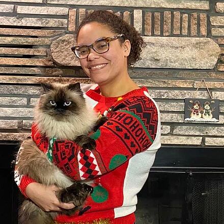Bianca spends most of her volunteer hours working with cats and new volunteers. “I am a Kitty City volunteer at the Adoption Center and a member of our Post-Adopt Feline Support team. I am also a Kitty City First Shift Mentor and a Virtual New Volunteer Orientation Host,” says Bianca.
