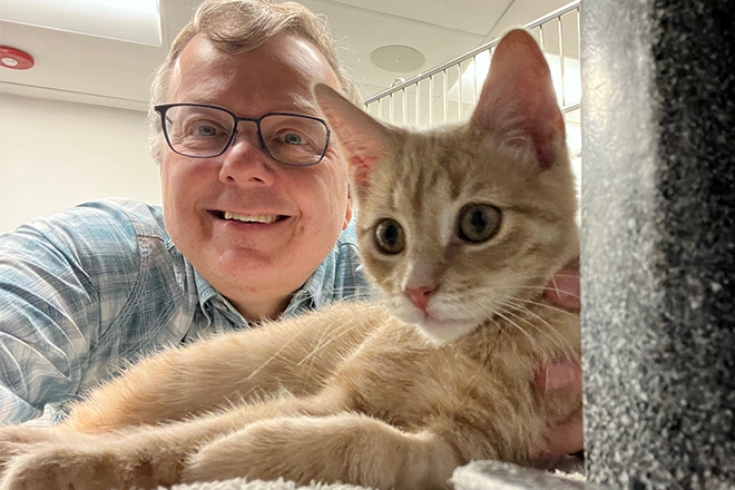 “Service is the best way to get your mind off your own troubles, and I needed something therapeutic after particularly hectic days. Working with kitties and potential adopters was just the ticket,” said Eric Boberg.