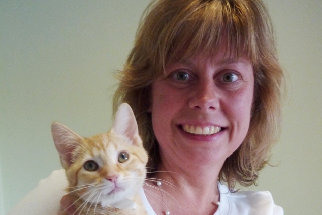 Right now I have four cats. I found Milo and Perry living in my backyard shed as kittens. Prince was my aunt's cat and joined the household after she passed away. Maddy is my most recent acquisition: she was living under a porch with her kittens. The kittens were fostered and found homes, but Maddy stayed with me. She was spayed at PAWS Chicago's Lurie Spay/Neuter Clinic.