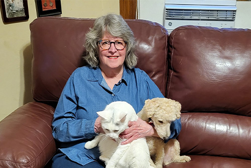 “I’ve had cats and dogs my entire life. My oldest cat, Harry, lived to be 19 ½ years old. Currently, I have two dogs, PAWS alums Charlie and Finley, and a cat named Blanche who absolutely adores her dog brothers. I strongly believe every pet deserves a second chance and to find a loving home,” says Roberta.