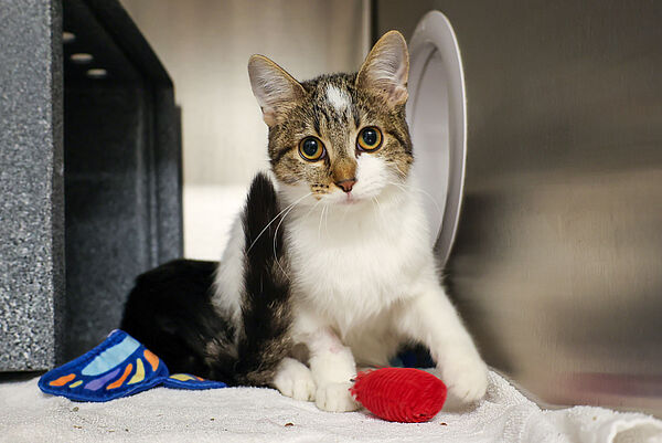 Not long after intake, our medical team learned that five of the cats were battling panleukopenia, a highly contagious and often deadly virus. Jolanda, Joyce, Joliet, Jace, and Joseph would need urgent medical help. For many shelters, this diagnosis would have meant the end. But because of you, PAWS could give them something much more powerful: a fighting chance.