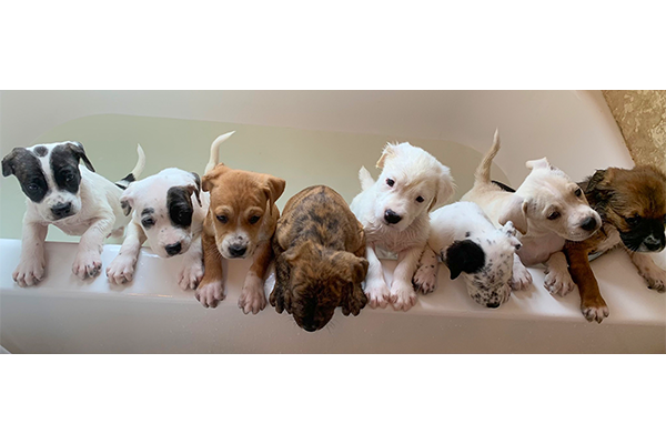 “We wanted to give back and bring my partner joy after working shifts in the hospital to help people survive. We started with one foster dog, then a mom cat and her ten kittens, then two puppies, and then Honeycomb and her ten puppies,” said Molly.