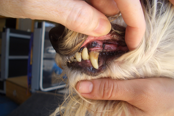 Dry food is not, by nature, better for the teeth. It does not “chip off tartar.” In fact, many dry foods contribute to tartar production by sticking on the teeth. And since dogs don’t floss after meals, the tartar builds. It is often easier for animals to lick canned or raw foods cleanly off their teeth. Foods and treats that have fewer sticky carbs in general are best – avoid wheat, corn, sugars, molasses, soy and peanut butter.