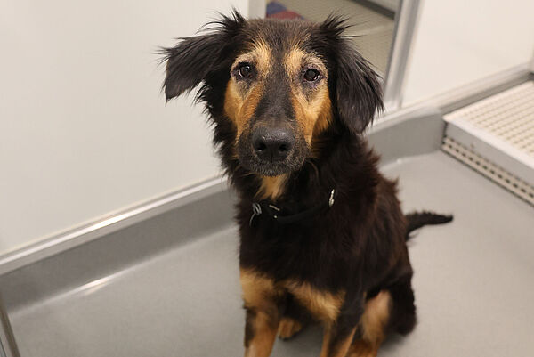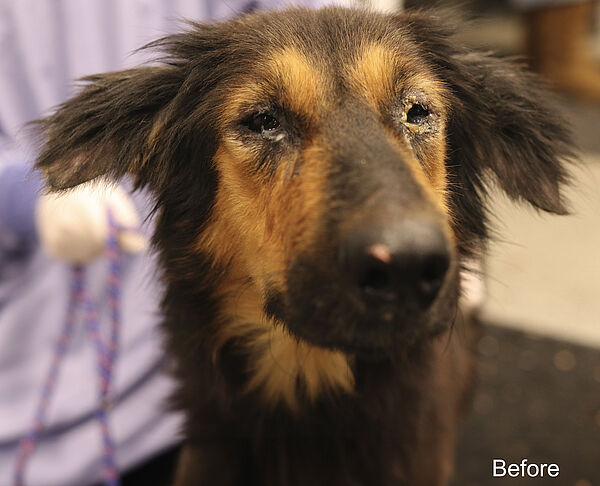 When Danielle, an 8-year-old black-and-tan mixed breed dog arrived, she was skinny, dehydrated, had two tick-borne diseases and entropic eyelids, which meant her eyelids were turned inwards, and her eyelashes were rubbing against her eye.
