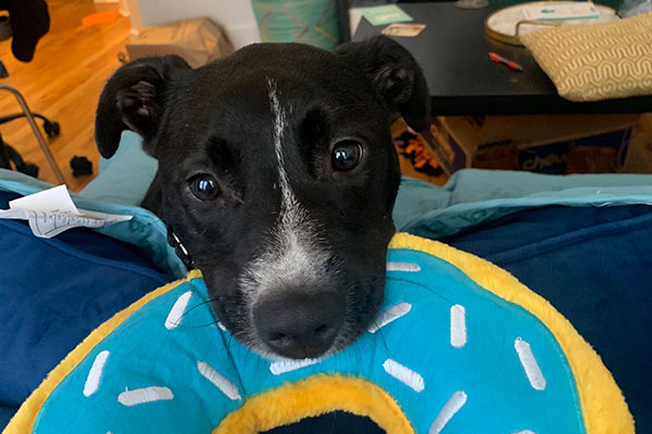 “My favorite moment with Journey was when she picked up a toy and played for the first time. I got her a little donut toy and she grabbed it immediately and started tossing it around the living room. It was the first time she was just a happy dog having fun with a toy. Now, she loves chewing her bones and destroying fluffy toys. She never eats the fluff but gets so much enjoyment in just tearing them to shreds. It’s so funny to watch!” said Amy.