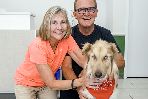 During his foster stay, Frank Rogers, a family friend, came to visit and became smitten with Ryder. They took him on as a Help Me Heal pet, our foster-to-adopt program for injured pets.