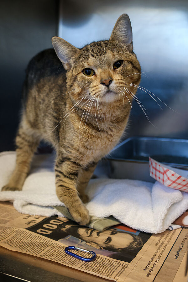 After being found under the hood of a car, Harrison was brought to an impoundment facility in Cicero. Like many stray cats, Harrison had been looking for a warm hiding place to survive the winter, but it was clear he’d suffered a terrible injury in his past.