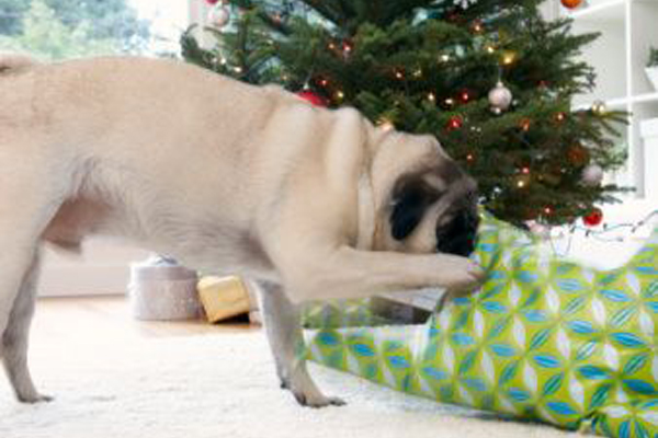 Garibay reports that many pet owners make the mistake of wrapping a bone or toy present for their pet in foil and placing it under the tree. “The animal usually eats the entire ‘package’ – foil and all to get the good stuff and ultimately ends up here with diarrhea, vomiting, or more.” Best policy: invest in a toy or bone meant for pets and give it to them when you are around to supervise. Never wrap anything in foil.