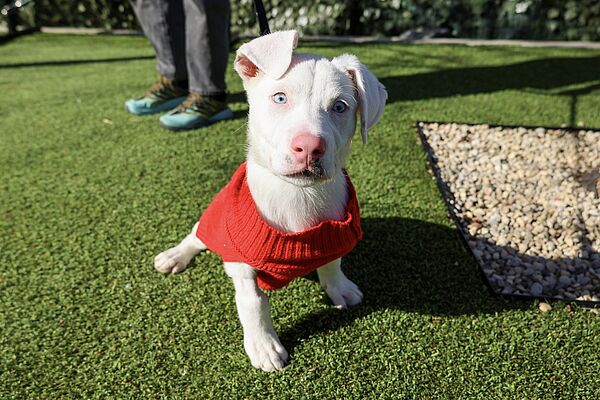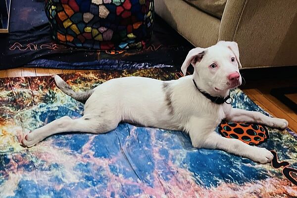 Pretzel originally came to us from Chicago Animal Care and Control (CACC) as a young puppy with a serious orthopedic issue: a malformed left hind leg that he was born with. Though he instinctively tried to use the leg, it caused significant pain and bleeding. After careful assessment by our expert veterinary team, we determined that amputation would be the best course of action to relieve his discomfort and give him full mobility on three legs. He underwent a successful mid-femoral amputation. During his stay, we also identified that he is hearing impaired, another challenge he would need the right home to help manage.