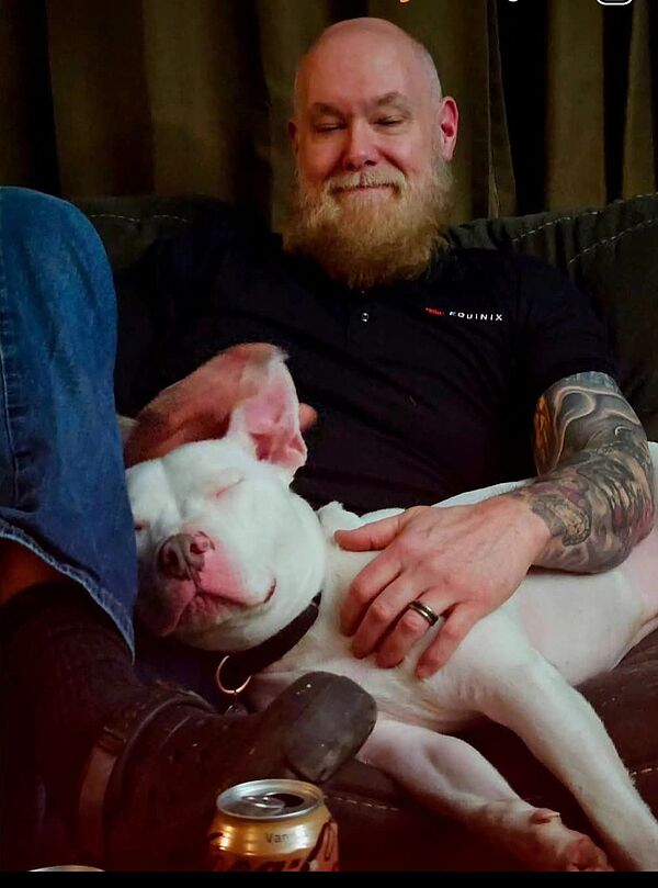 After handing over their generous donations, Clint went to see the dogs at PAWS. “That's when I discovered Edison. Edison reminded me so much of our late and great Cashew that I had to meet him. I had my wife on FaceTime as we did the meet and greet, and I fell in love with Edison.”
