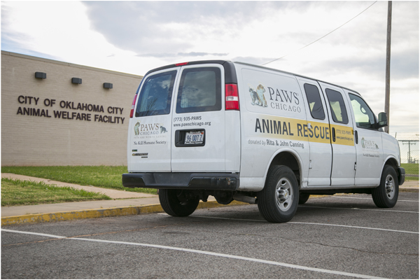 PAWS Chicago responded to the crisis by organizing a group of 16 volunteers who drove eight vans to Oklahoma City on the Friday following the disaster. The volunteers were accompanied by members of PAWS Chicago’s medical and intake team. Emergency medical assistance was provided to pets in need and the group transported 76 cats and dogs from Oklahoma City’s ACC to PAWS Chicago’s Rescue & Recovery Center.