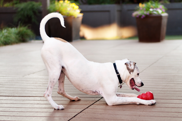 Play - They usually enjoy any activity that involves fetching a ball or Frisbee, tugging or chasing. Toys of all sorts are another good release. Dogs can pounce on them and shake them.