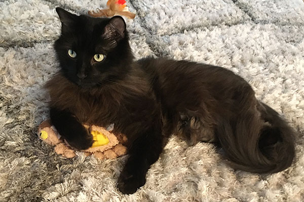 With long, black hair, a bushy tail and piercing, yellow eyes, Sherlock is an extremely striking fellow. However, he suffers from a couple of rare medical issues and, as such, was deemed one of our special Comeback Kitties.