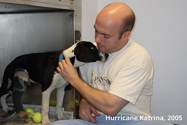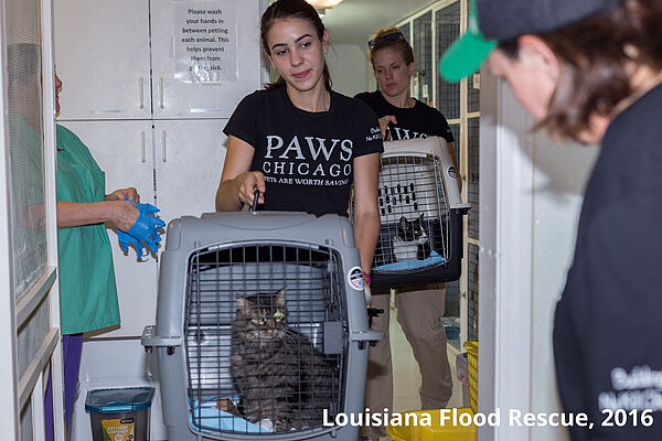 PAWS Chicago's Disaster Relief program launched in the aftermath of Hurricane Katrina in 2005 and the devastation that followed. Many people stayed in harm's way because there was no emergency response plan that accounted for their pets; others were forced to leave their pets behind to save themselves.