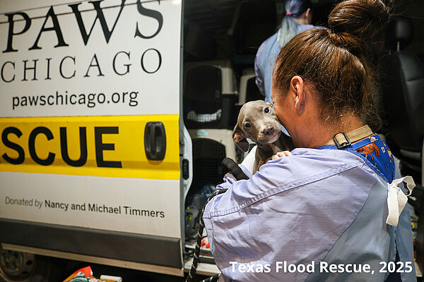 For 20 years, PAWS Chicago has mobilized its volunteer force in the wake of natural disasters to help animals in the impact zone and provide hope to people coping with unimaginable tragedy. Most recently, our Disaster Relief program took action when flash flooding in Texas left a trail of destruction across the state.