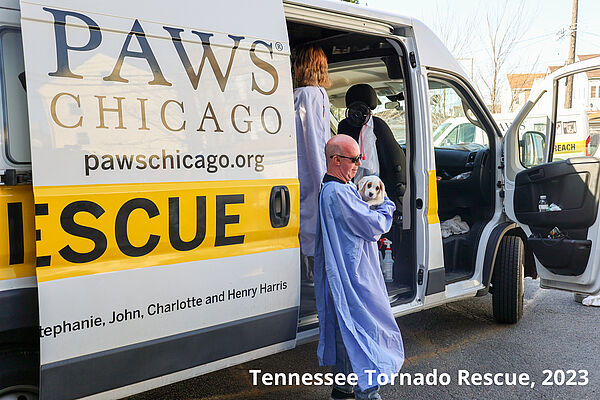 When disaster strikes, PAWS Chicago doesn’t hesitate. For 20 years, PAWS has rescued animals trapped in shelters during hurricanes, tornadoes, floods, and emergencies — giving them a second chance. Our Chicago community always answers the call when there is an emergency: your compassion and commitment make this work possible.