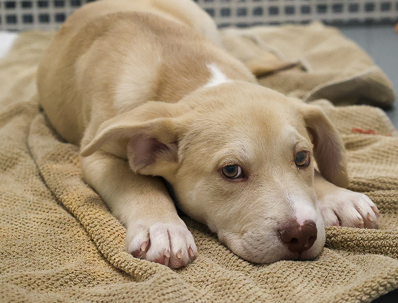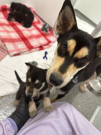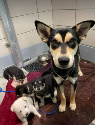 Spartan was treated and monitored all day yesterday and had to be separated from his mother, Sonesta and his four littermates (Sonoma, Sparrow, Spago, and Soda). But Spartan has proved to be a fighter and quickly recovered. We are happy to report that he is back with his family and feeling much better. PAWS veterinary staff is monitoring the condition of many of the Texas puppies and dogs that are getting stronger and ready to head to caring homes.