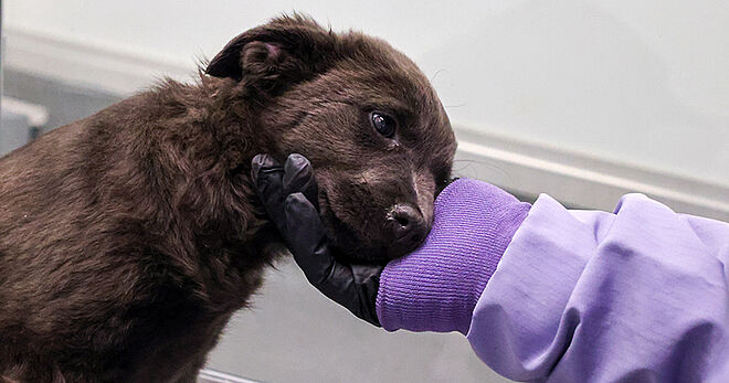 Long drives are hard on all of us, but for Spartan a 7-week old black and tan puppy, the 1,100-mile journey from Houston to Chicago was rough. Spartan was dehydrated and vomited several times during the trip. Luckily for Spartan, his destination was PAWS Chicago Medical Center, where staff, volunteers immediately examined and treated him.