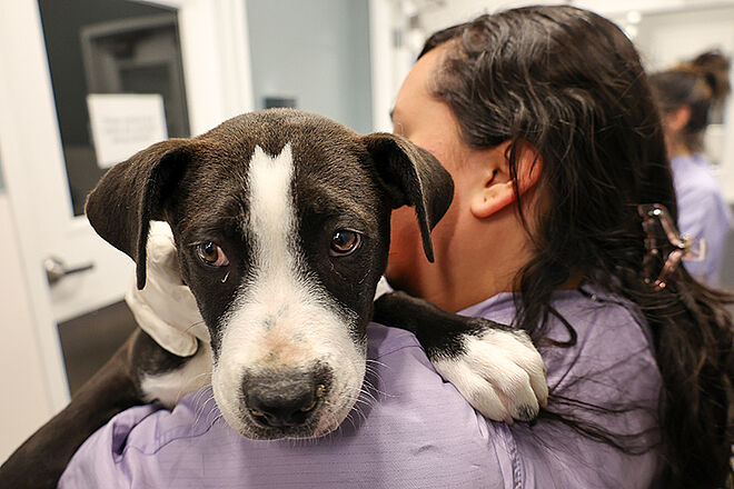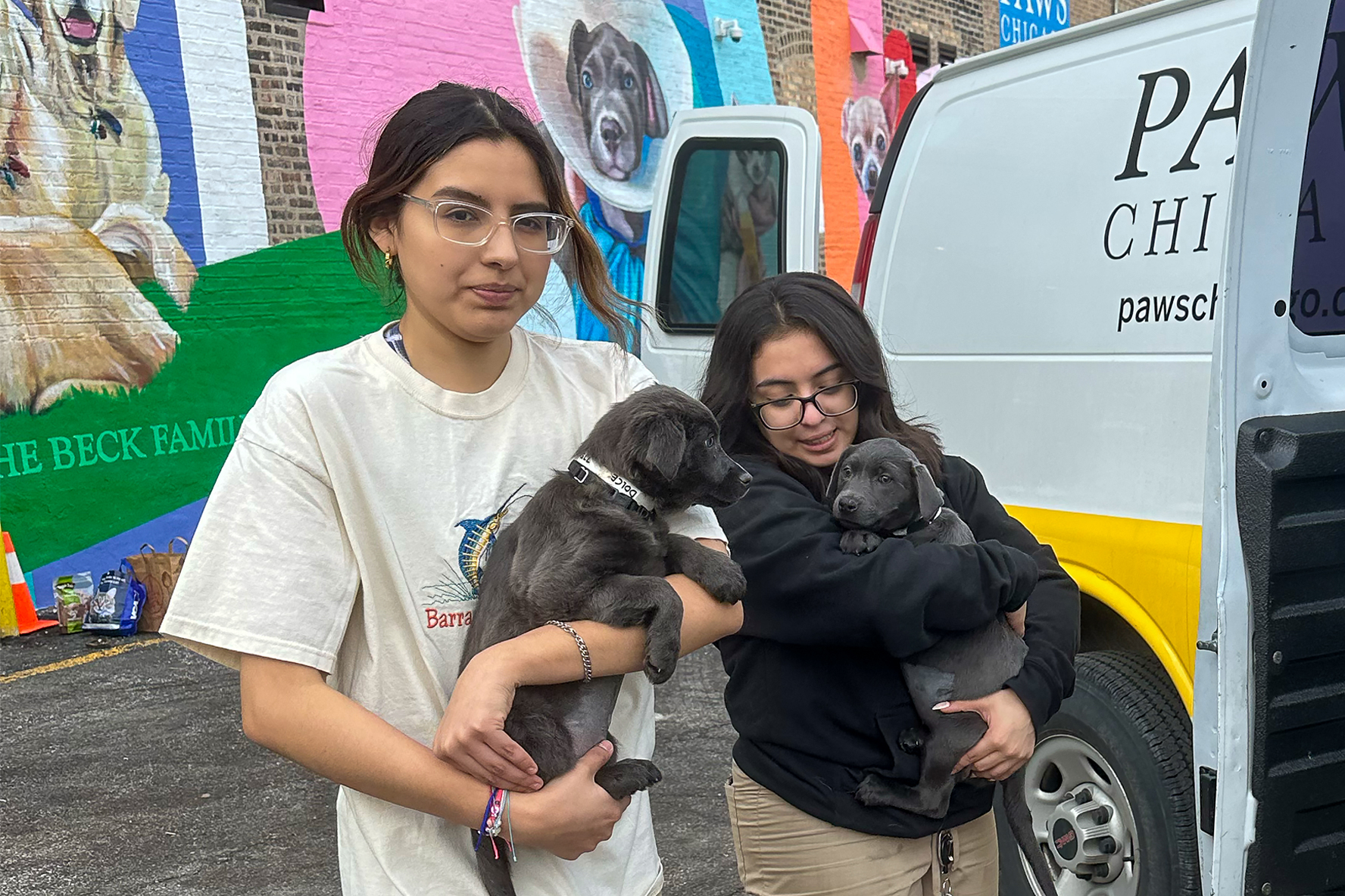 We contacted the Pasadena shelter and several other animal rescue organization partners in the region, offering to accept more than 30 dogs and puppies, which recently arrived at the PAWS Chicago Medical Center.