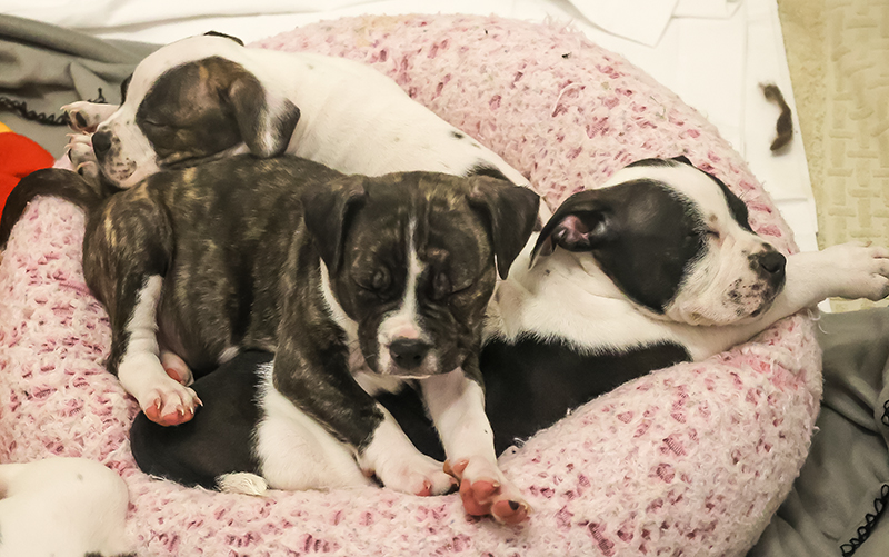 After a long and tiring 1,100-mile journey, 33 dogs and puppies arrived at PAWS Chicago just after midnight this morning from five Houston-area shelters. They are spending their first day in Chicago resting up for loving homes. PAWS Chicago volunteers, employees and medical staff stayed several hours late to welcome the dogs and make them immediately comfortable at the PAWS Chicago Medical Center in Little Village. Within minutes of arriving, each dog – including 27 puppies under 1 year old – were already snuggling in doggie beds, playing with toys, and resting after a long day of travel.
