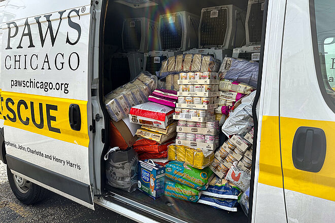 When PAWS Chicago called, the overcrowded shelter told us that existing pets at the shelter faced euthanasia due to overcrowding from displaced and homeless pets following the storms. PAWS Chicago immediately pledged its assistance.