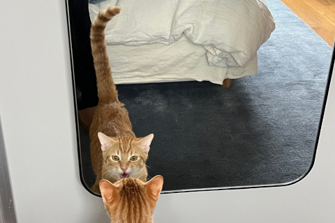 Flounder is now renamed Finn! Immediately upon bringing Finn home, he was so calm, comfortable and loving. That has only amplified and we can’t believe it’s only been a week as it seems we have had Finn for forever. He is curious, snuggly, playful and instantly friendly to new friends.