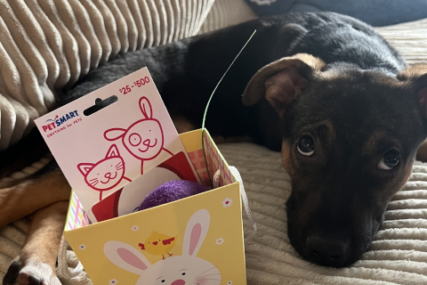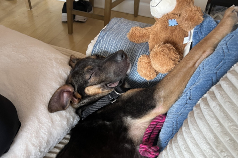 Darlita is now called Bisou! She is adjusting really well to her new life and is making great progress in her training and adaptation. Bisou loves naps on the couch, getting all of the squeakers out of her new toys, and making new friends on walks and at the dog park. Bisou smiles with her teeth and we love her more than anything!