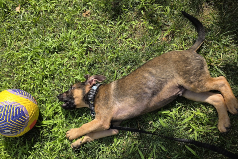 He is an incredibly sweet, fun, and smart puppy that is working very hard to learn the rules of the house and seems to be enjoying the process.