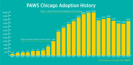 At PAWS Chicago, we keep working to grow our operations to save more homeless pets. It's how we've gone from saving a few dozen to 5,000 pets a year. But it is our adopters who make the real magic happen by bringing these loving pets home. Adopt a pet and spread the word!